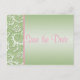 Green and Pink Damask Save the Date Postcard