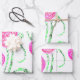 Green and Pink Flower Vines Wrapping Paper Sheet