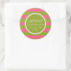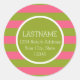 Green and Pink Striped Pattern Custom Monogram Classic Round Sticker