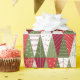 This Christmas wrapping paper has a Christmas trees pattern in a minimalist style of geometric triangles design. This is the green and red colorway. You can make the pattern on this wrapping paper smaller or bigger. A cute modern Christmas patterned wrapping that will look lovely under your Christmas tree.