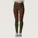 Green, red star pattern on black Leggings.