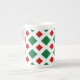 Celebrate Christmas with this bold, geometric pattern of green diamonds and smaller red diamonds on a white background. The white forms crosshatching which keeps the diamond shapes from touching, similar to a harlequin pattern.