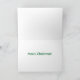 Nice quality card. Says “Merry Christmas!” inside but it has a template so you can customize it. Pattern of small red and larger green diamonds on white background printed crisply. Message inside printed cleanly. Modern and traditional looking at the same time.