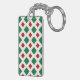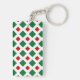 Celebrate Christmas with this bold, geometric pattern of green diamonds and smaller red diamonds on a white background. The white forms crosshatching which keeps the diamond shapes from touching, similar to a harlequin pattern.