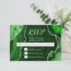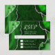 Complete your event stationery with this elegant RSVP card featuring a green agate marble design accented with luxurious silver details. The bold geode-inspired background creates a dramatic and sophisticated look, perfect for weddings, birthdays, formal celebrations, or glamourous evening events. Designed with clear response sections, this RSVP card allows guests to easily confirm attendance, indicate number attending, and respond with acceptance or regrets. The clean, modern typography keeps details easy to read while complementing the rich agate texture. Easily personalise all text to suit your event and coordinate beautifully with matching stationery.