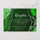 Make a bold and elegant statement with this green and silver agate marble wedding reception card. Featuring rich jewel-toned emerald hues, organic stone textures, and shimmering silver accents, this design beautifully complements a luxurious wedding celebration. Perfect for formal, modern, or glamorous events, the dramatic contrast of green and metallic silver sets the tone for an evening of cocktails, dinner, and dancing. Fully customizable with your reception details, this agate-inspired reception enclosure adds a refined and cohesive touch to your wedding stationery suite, ideal for fall or winter weddings.