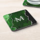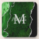 This coaster features an elegant and glamourous agate marble background with geode gemstone detailing and faux silver glitter accents. The monogram combines handwritten script and modern sans serif fonts for a classy and sophisticated look. This will make the ideal gift as it can be customised with a name and initial. The deep green hues make it perfect for autumn fall and winter.