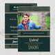 Classy and contemporary look for his graduation with a masculine feel in green and taupe patterned prints with grad's photo and name on the front, class of year and event contact information grad's celebration details on the back.