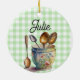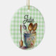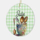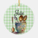 "Green and White Chequered - Spoons in Cup Ceramic Ornament