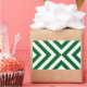 Alternating green and white chevrons converge in this bold original geometric pattern.