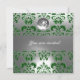 GREEN AND WHITE DAMASK GEM STONE MONOGRAM INVITATION