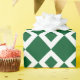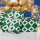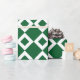 A bold, graphic pattern of interlocking green and white diamond shapes. The white diamonds each contain a small green diamond making green the dominant colour of the geometric design.