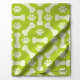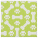 Green and White Dog Bones and Paw Prints Pattern Fabric