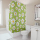 Green and White Boho Floral Daisy Pattern Shower Curtain