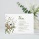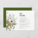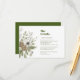 This details enclosure card has an outdoorsy feeling with pine cones and fir branches that would be perfect for a Christmas wedding or for a wedding with a woodland location. Colour include olive green, sage and brown on bright white. The words "the details" are written in a bold headline font and is featured towards the top with the remaining wedding details directly below. All text can be edited to suit the needs of your event. The back is a coordinating green colour.