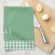 green and white gingham,rustic farmhouse custom monogram,personalised customised kitchen towel,personal name check pattern,retro checked chequered dishcloth,light add your own text,sage family name surname,pastel country initialled initial,classic traditional stylish chef,countryside vintage monogrammed cook