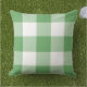 Pillow design features a casual gingham plaid / check pattern that is perfect for summertime! Note, you can customise the leafy foliage green background colour to coordinate with your outdoor decor.