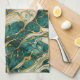 Green and White Marble with Gold Accents Tea Towel