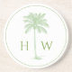These coastal inspired coasters feature a classic palm palmetto tree in green on a white background with a monogram that you can personalize with your choice of initials.