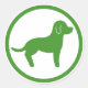 Green standing dog silhouette inside a green circle meaning that pets are welcome.