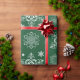 Statement Christmas or holiday wrapping paper with a vintage Green and White snowflake pattern