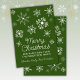 Green and White Snowflakes Christmas card with a cute whimsical fun and festive holiday greeting.