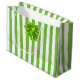 Large glossy gift bag with an image of light green and white stripes with an optional green bow on the front. See matching medium gift bag. See the entire St. Patrick's Day Gift Bag collection in the PARTY FAVORS section.