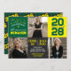 Green and Yellow Modern Chalkboard Graduation Photo Invitation on Black Chalkboard