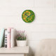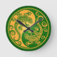 This unique green and yellow yin yang design features two geckos that are decorated with intricate lines and swirls. Each lizard's feet are spread out in all directions making is look like it is climbing on the surface of the pattern. The two sides of the yin yang are inverted copies of each other which creates a beautiful balance within the design. This unique gecko pattern is a stylish interpretation of this traditional symbol for the balance of nature.