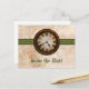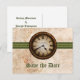 This Antique Clock Save the Date Postcard features a vintage timepiece prominently centred on top of a metal ball chain and sleek olive green striped border. The distressed look of the grungy paper texture background completes the antiqued feel of this unique design. This offbeat save the date postcard is perfect for announcing your vintage or steampunk inspired wedding. Easy to customise, simply add your wedding details in the spaces provided. Click on "Customise It" to find additional options to personalise this design.