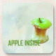 Photo of a big green apple against red background. The apple is eaten out, only the core is left. Text Apple inside is added. It means that the apple is inside the eater.