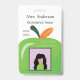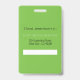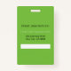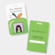 A vertical photo ID badge for staff members of your school with a bold green apple and a small frame around the picture . Personalise it with the employee's photo (a square one works best ) , name , job title , year and school name on the front . Make sure to customise it with your establishment's name and address on the back . The white rectangle is designed for the employee signature or for a code bar . A metal clip , a lanyard or a retractable are available for purchase in addition to the badge if you need one .