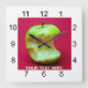 The big bite has been taken out of the green apple. Red background, white clock face. Funny customizable square wall clocks. You can change the image and you can change or delete the template text. Have fun.