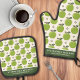 Green Apple Pattern Personalised Name Oven Mitt & Pot Holder Set