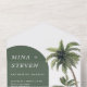 Embrace tropical elegance with our Green Arch Palm Tree Wedding All-in-One Invitation. Highlighted by a stylish green arch and graceful palm tree motifs, this invitation perfectly sets the tone for your exotic celebration. All essential details are conveniently included for effortless planning.