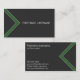 These simple business cards are perfect for an individual to hand out at any social or networking event. The front and back of the card features a black textured background. A green arrow points towards, and draws attention to your text. The front contains room for your name or company name, while the back contains room for all of your contact details.
