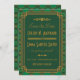 These save the dates feature a emerald green and gold colour palette, a geometric frame, geometric patterns, and other stylistic details all inspired by Art Deco and the roaring twenties. You can customise the sample text fields to your liking.