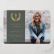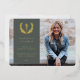 A formal but modern graduation photo announcement for any type of medical qualification. Featuring a full-bleed photo with a colour overlay and the Asclepius symbol surrounded by a laurel wreath in a foil colour of your choice. The template text for the graduate’s details is also foil pressed and is completely customisable, so the font size, style and placement can be changed. The back features a solid coloured background and template text for a longer message. If you would prefer to include no text on the back, just delete it before ordering. If you would prefer a photo on the back of the card, delete both the coloured background and the template text and upload your own photo. The design is available in other colours and with designs for specific medical qualifications in my store.