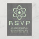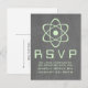 Cute and nerdy Atomic Chalkboard Wedding Response Card featuring a simple atomic symbol in mint green on a chalkboard look background. This geeky and fun wedding RSVP postcard is perfect for the science enthusiast couple! Easy to customise, simply add the details of your wedding in the spaces provided. Click "Customise It" to find more personalisation options.