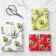 Green avocado Christmas wrapping paper sheets. Funny gift wrap for the Holiday season and more. Custom background colours. Matte and glossy options. Personalise with your own greeting and name. Colourful fruit print design for wrapping up cool x-mas presents. Avocado with pit drawing.