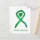 The postcard art print features a picture of a green awareness ribbon art painting. Add your own optional words or message to the postcard for personalised awareness ribbon art cards! You can also remove the text for an art only postcard print. The green awareness ribbon painting postcards can be customised with personalised messages to make great awareness cause images or pictures for fundraisers, awareness gifts, or other special events. Give this awareness art as an awareness ribbon gift for any occasion.