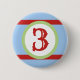 Green, Baby Blue and red custom number birthday button. Customisable with any number (or letter monogram).