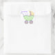 Green Baby Buggy Name Birth Date Announcement Square Sticker