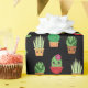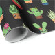 Green Baby Cactus on Black Background Wrapping Paper