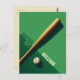 This postcard's theme include an illustration of a baseball bat and ball placed on a tow-shade-green background with the "batter up!" text with a customisable name. This is a great postcard for young baseball players and baseball lovers.