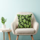 Green Basil Leaf Herb Pattern Pillow. Green basil leaves in a pattern on a black background.