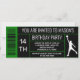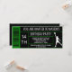 Green basketball birthday party invitation with basket ball player on a green and black shoe box label background. Simply add your event details.