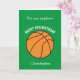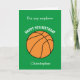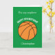 A green personalised basketball 9th birthday card for nephew, son, grandson, etc. You will be able to easily personalise the front with his name. The inside reads a birthday message, which you can easily edit as well. You can personalise the back of this basketball birthday card with the year. This would make a unique birthday card keepsake for kids who love basketball.