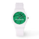 Green Basketball Womens Custom Team or Player Name White Wrist Watch: A gorgeous and personalised watch for basketball players, coaches and fans, especially for those with green team colours. Would make an awesome gift for a basketball coach or for high school or college basketball seniors. Just type any text (player name, team name, school name, mascot, slogan, jersey number, whatever!) in the custom text box!