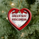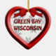 A graphic design of snowflakes in a 3D look red frame on a heart shape Green Bay Wisconsin Christmas ornament. The ornament has text templates for your personalisation. ©2012charmainepaulson